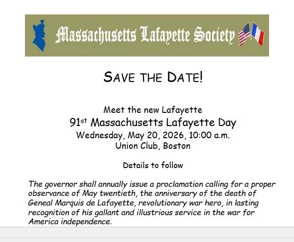 2026 Massachusetts Lafayette Day Wednesday, May 20, 2026 10:00 AM 1:00 PM 10:00 13:00 Google Calendar ICS